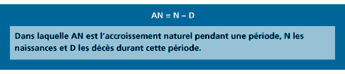 L'accroissement naturel est l'exc�dent (ou le d�ficit) de naissances par rapport aux d�c�s dans une population durant une p�riode de temps donn�e.