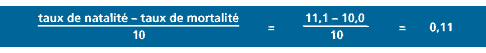 Le taux d'accroissement naturel peut aussi se calculer d'apr�s les taux de natalit� et de mortalit�.