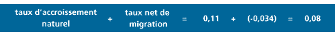Le taux de croissance est aussi �gal � la somme du taux d'accroissement naturel et du taux net de migration :