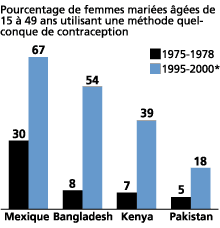 L'utilisation des contraceptifs a augment� pratiquement partout dans le monde en d�veloppement, d'o� un d�clin marqu� de la f�condit�.